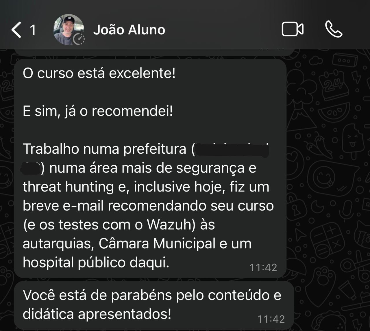 De uma olhada no que alguns alunos dizem sobre o treinamento Wazuh Expert!